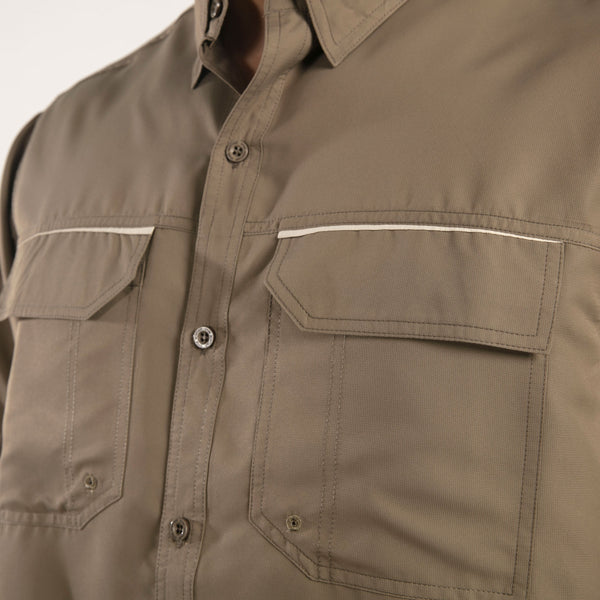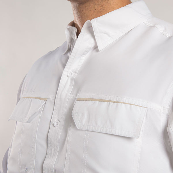 Camisa Jubae moderna con cuello button Down, fabricada en tela Ripstop, un tejido de alta calidad que otorga mayor libertad y flexibilidad de movimientos, gracias a su resistencia a la tracción evita desgarros generando mayor durabilidad. Cuenta con corte en espalda para hacer de la prenda un producto respirable. Posee detalles reflectivos y mangas Roll Up para dar un look más casual. Este producto cuenta con protección UPF +50 para otorgar mayor protección a los trabajadores.