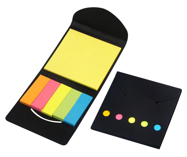 Porta Post-it Ecológico de Cartón reciclado. Incluye 1 taco post-it de 25 hojas de 7,5 x 7,5 cm + 5 tacos de 25 banderitas post-it de 5 x 1,5 cm.